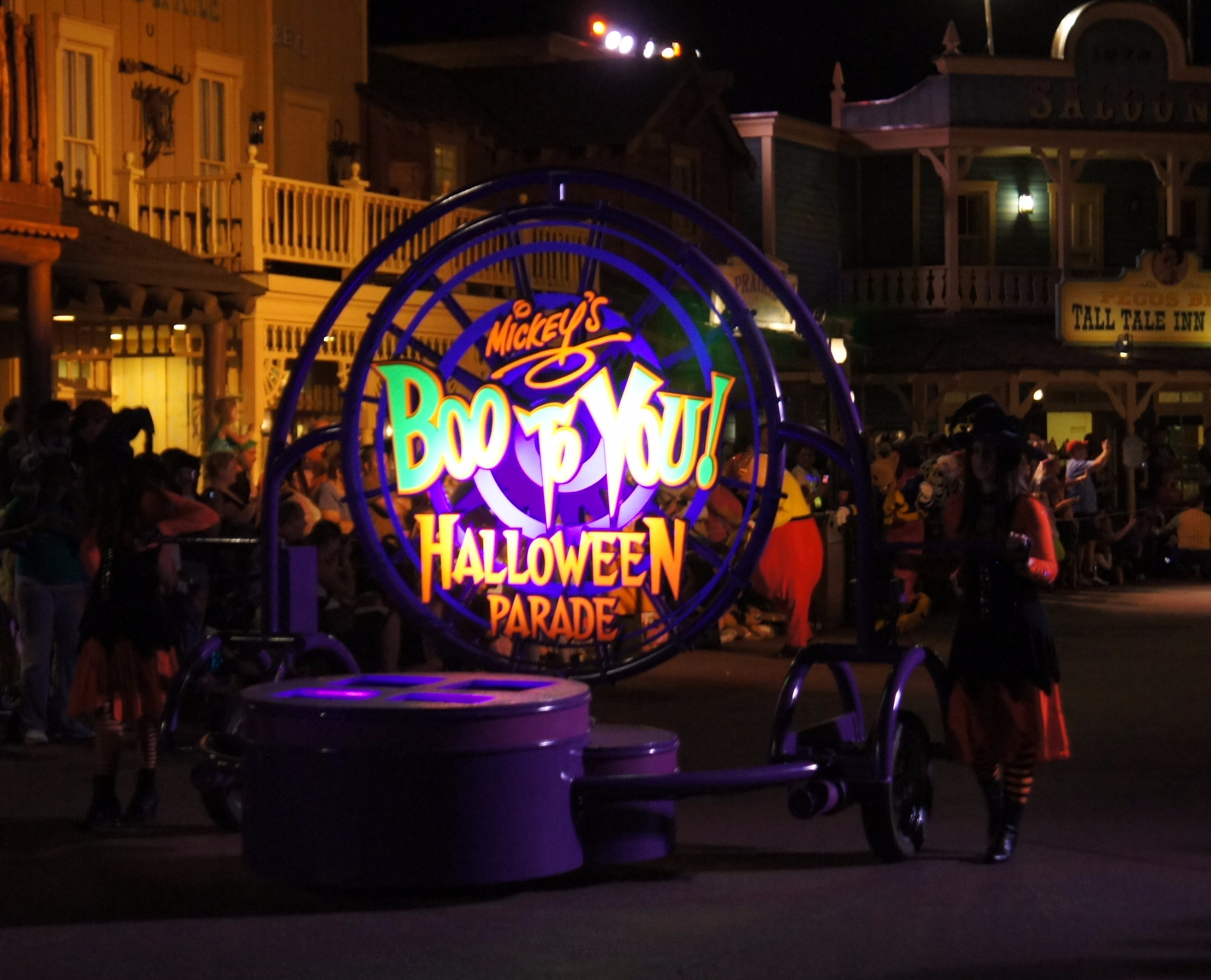 I love the parade, I love the fireworks, I love the shows, and the silly dance parties and seeing everyone all dressed up. I love the special merchandise and the silly special food items, and the Haunted Horseman. I love the characters that wander around, talking to guests, that you don’t have to wait in line for, that you might just bump into. I love the different lighting and music that plays during the parties. I love the festive mood of the parties. I love watching little kids’ faces when they see the gravediggers making sparks on the street with their shovels during the parade, or when they see Mickey and Minnie in their Halloween finery.