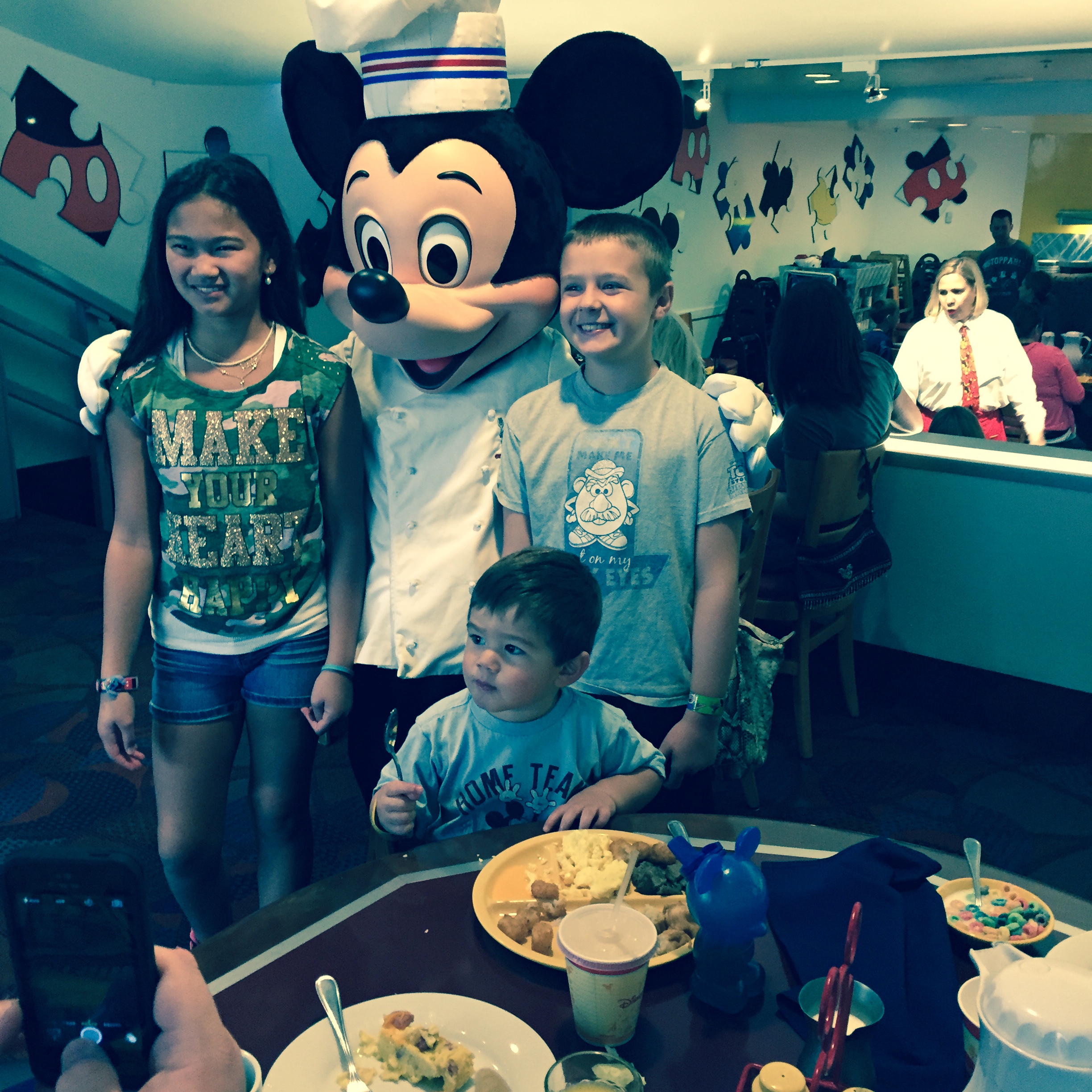 Timing: character meals are almost always buffets—so there is a risk you (or your entire party) will be at the buffet when a particular character visits your area—and generally, if you miss them, you may not get another chance. Usually if you pay attention or ask your server, you can figure out who is coming next and how long it may be before they reach your table—but pay attention. Last trip we sat next to a table that had 3 kids and 3 adults—the adults were all at the buffet when the characters came; I offered to take pictures but the kids had been taught NOT to talk to strangers so that was a no-go. I felt so bad!! Luckily, that particular character DID make it around again, so all was well!