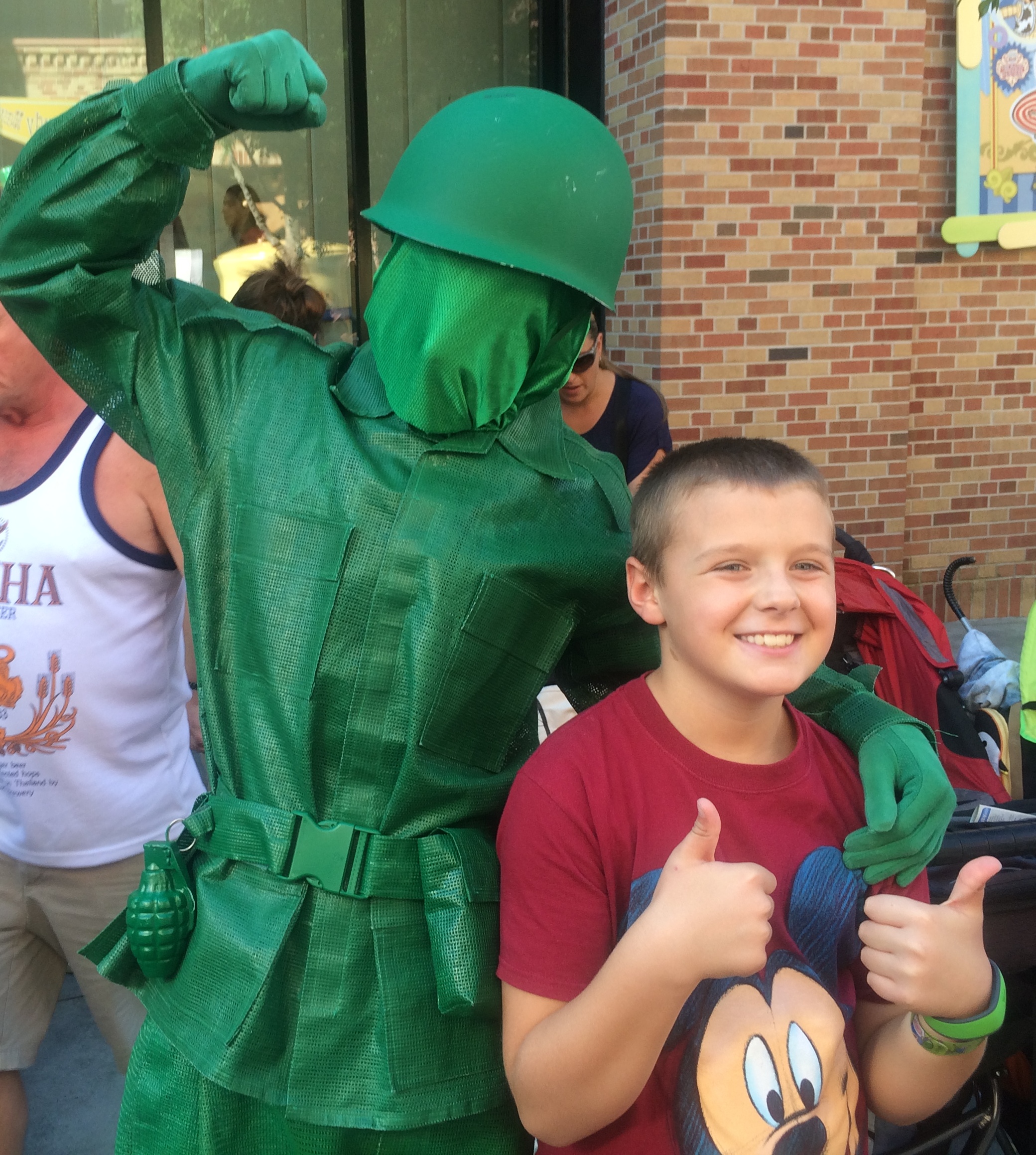 Look for character greeting opportunities in the WILD. Sometimes, characters don’t have a standard “on stage” spot, with a queue line and Fast Past + reservations. Sometimes, they’re just out walking around in the parks. Pay attention, and you may find an opportunity for a character greeting without any of the challenges of waiting in line or getting a FP+. NOTE: Characters heading to and from their scheduled “on stage” appearance are generally NOT allowed to stop and chat with guests as they are on a schedule; I’m not talking about characters en route to an appearance…I’m talking about characters “milling about” or in general, working the crowd. For example, you’ll often find Green Army Men in Toy Story Land. Or, you may find Mayor Donald wandering around Hollywood looking for unsuspecting strollers operating without a license 😉.