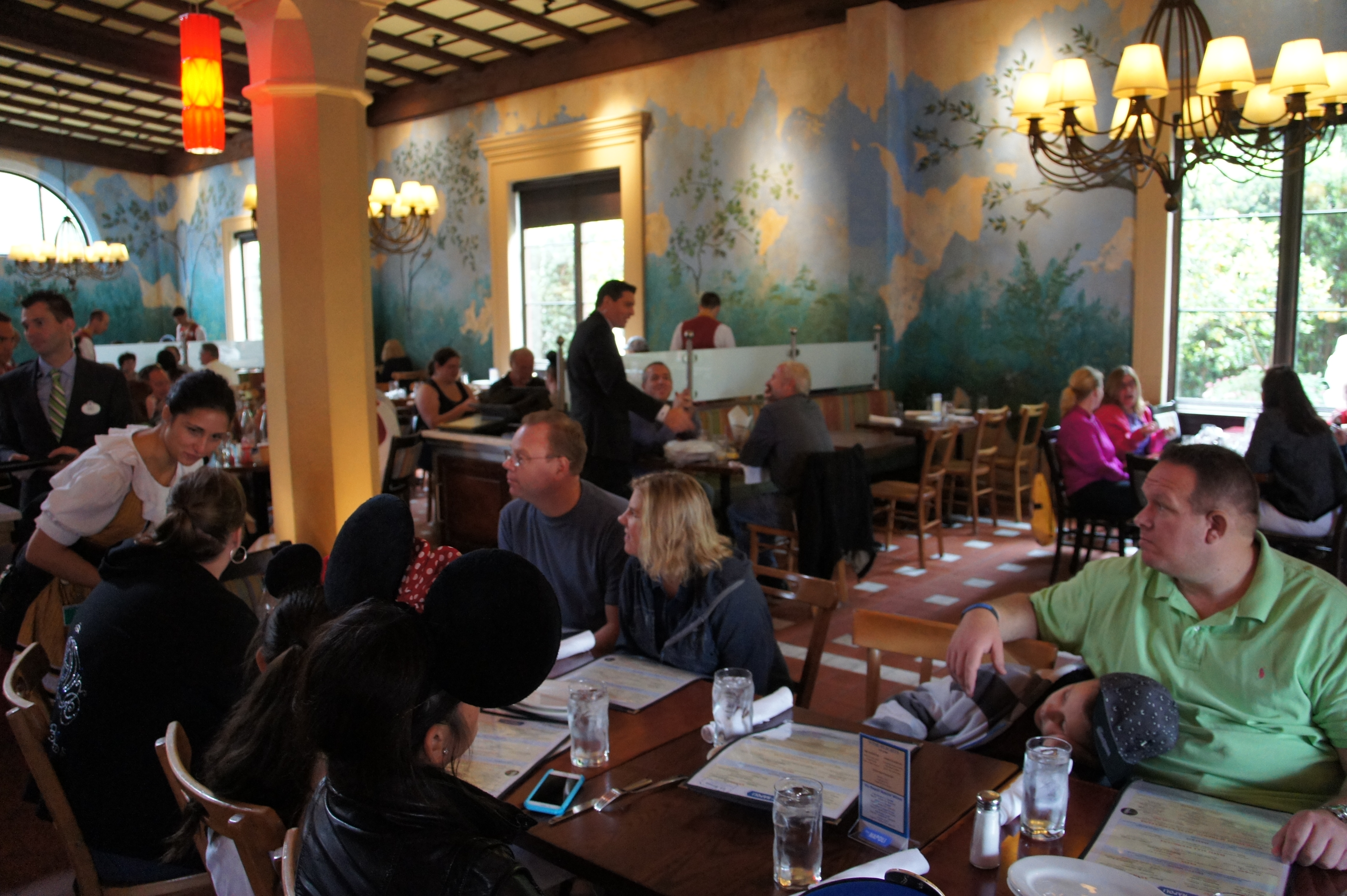 Pictures are more challenging: No photopass photographers go around with the characters, so any pictures are those taken by you or someone at your table—if you’re lucky, maybe a neighboring table or a cast member might volunteer—but usually, it’s you.