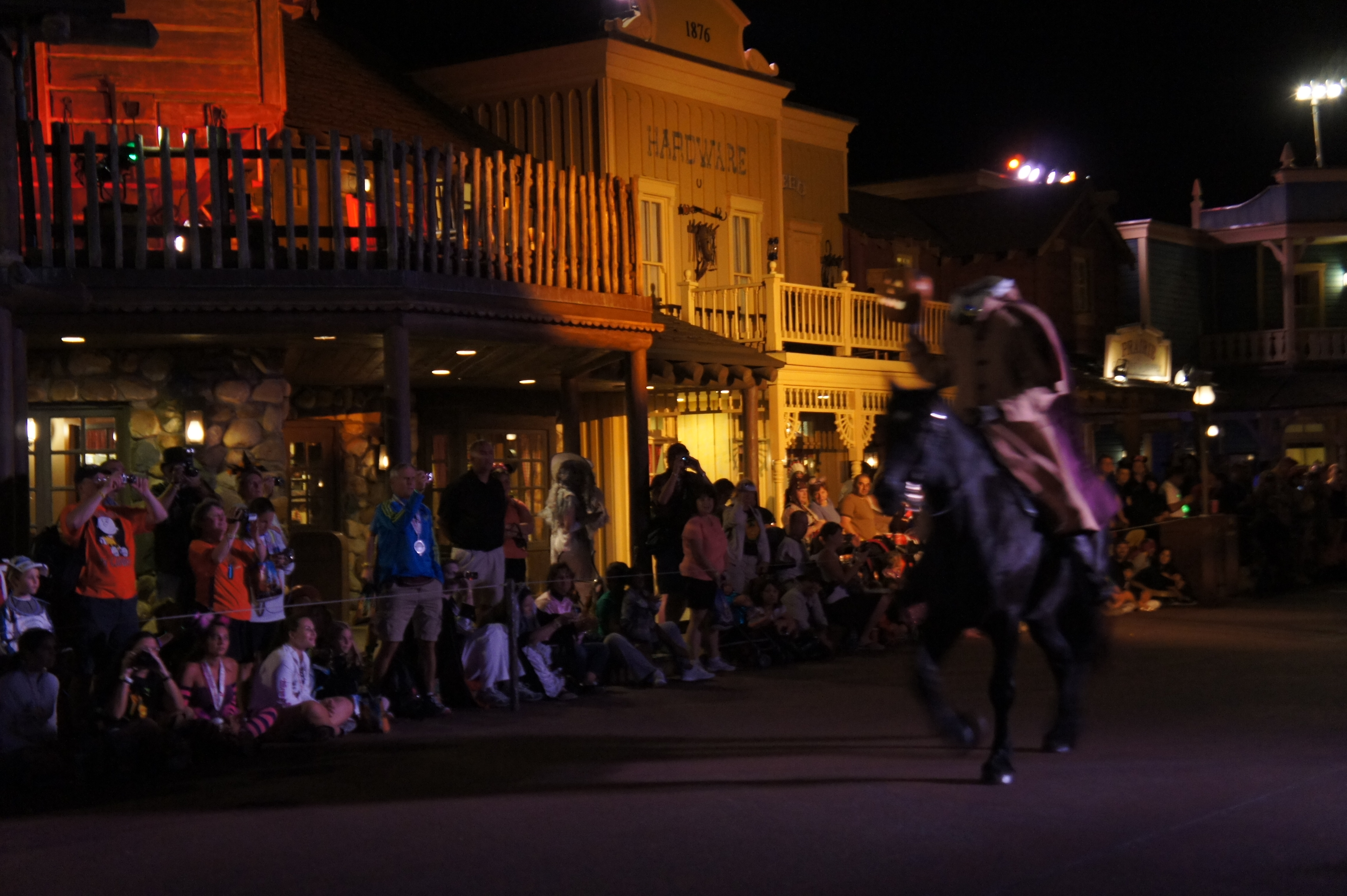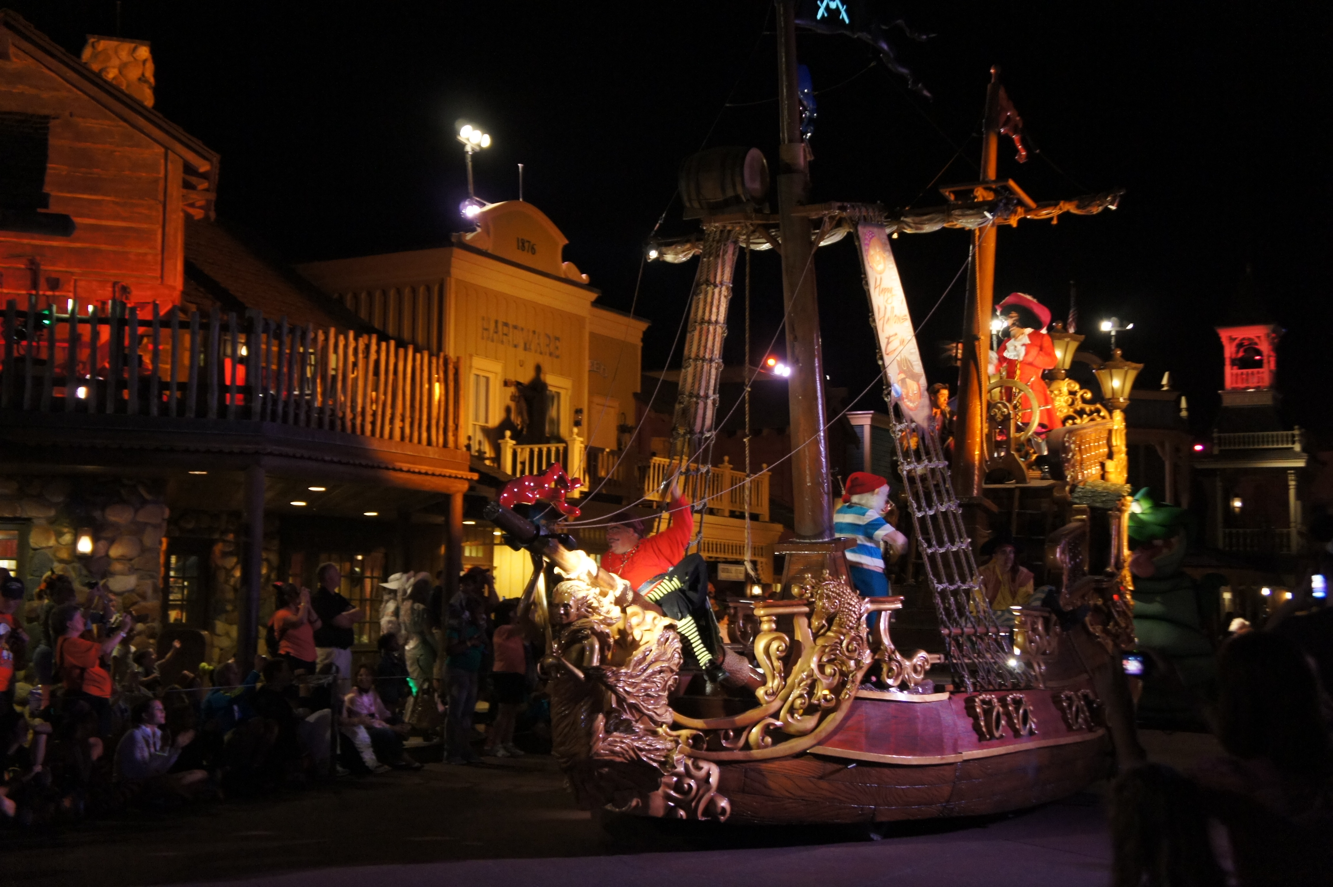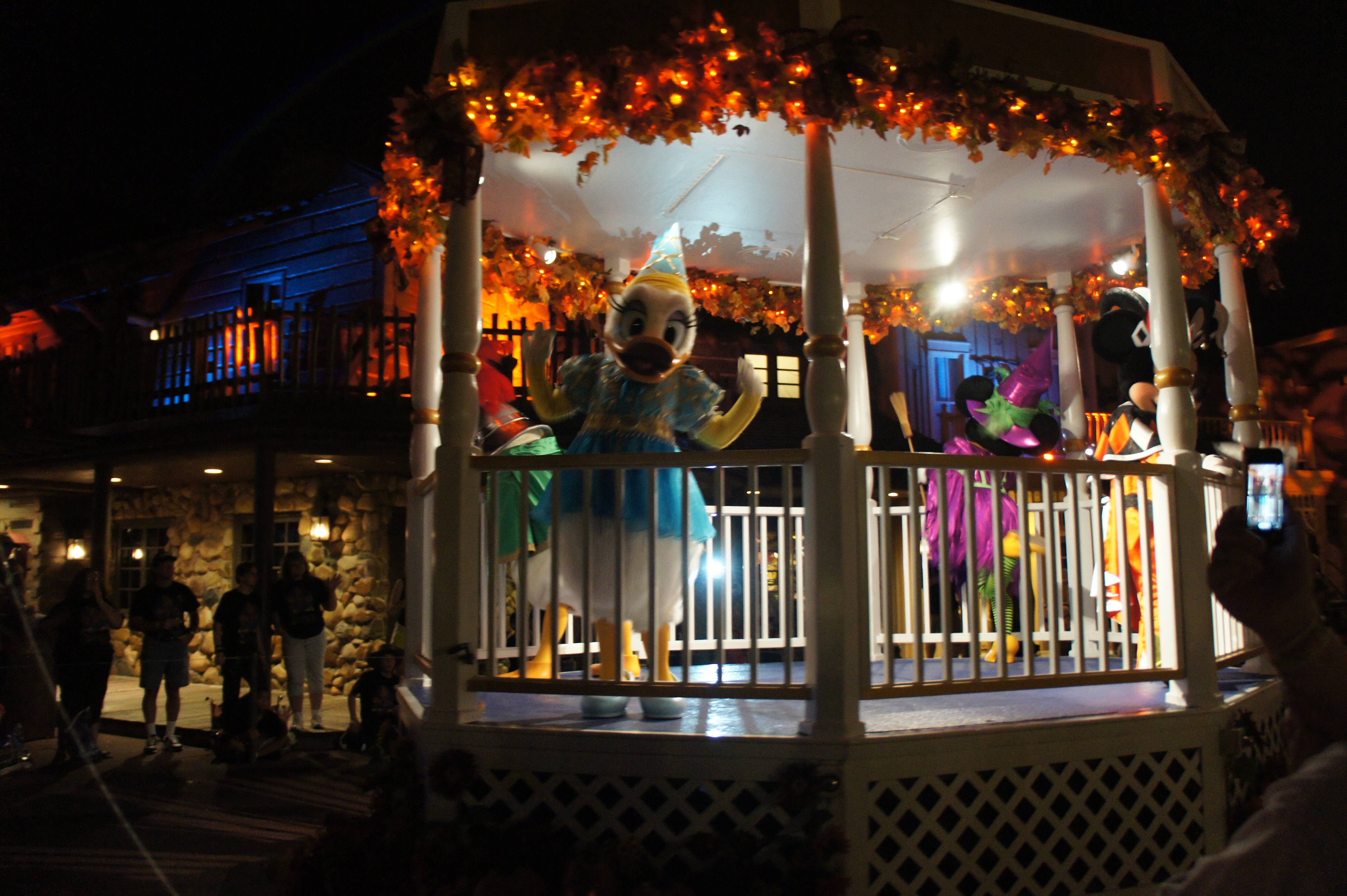 I love the parade, I love the fireworks, I love the shows, and the silly dance parties and seeing everyone all dressed up. I love the special merchandise and the silly special food items, and the Haunted Horseman. I love the characters that wander around, talking to guests, that you don’t have to wait in line for, that you might just bump into. I love the different lighting and music that plays during the parties. I love the festive mood of the parties. I love watching little kids’ faces when they see the gravediggers making sparks on the street with their shovels during the parade, or when they see Mickey and Minnie in their Halloween finery.