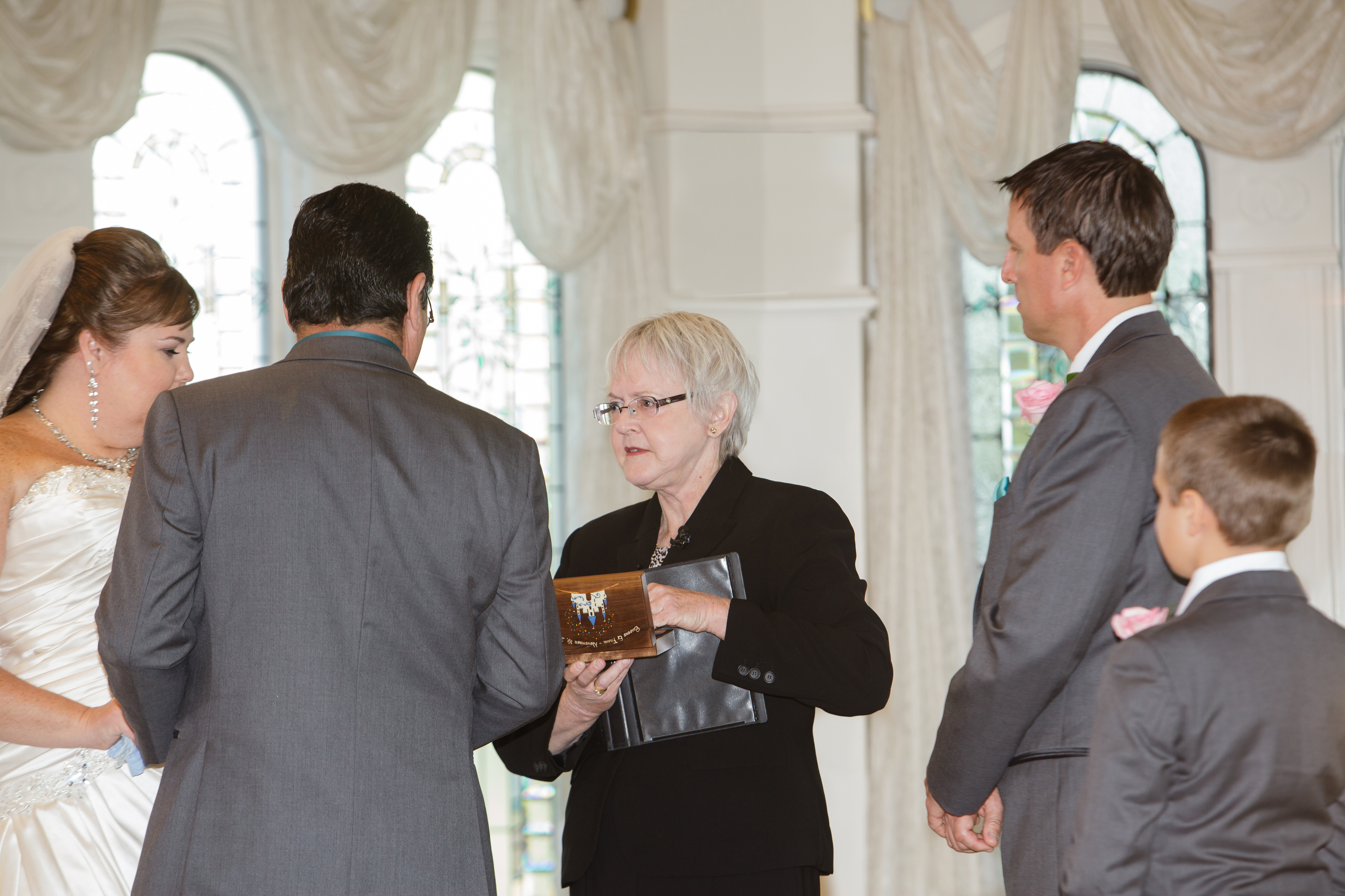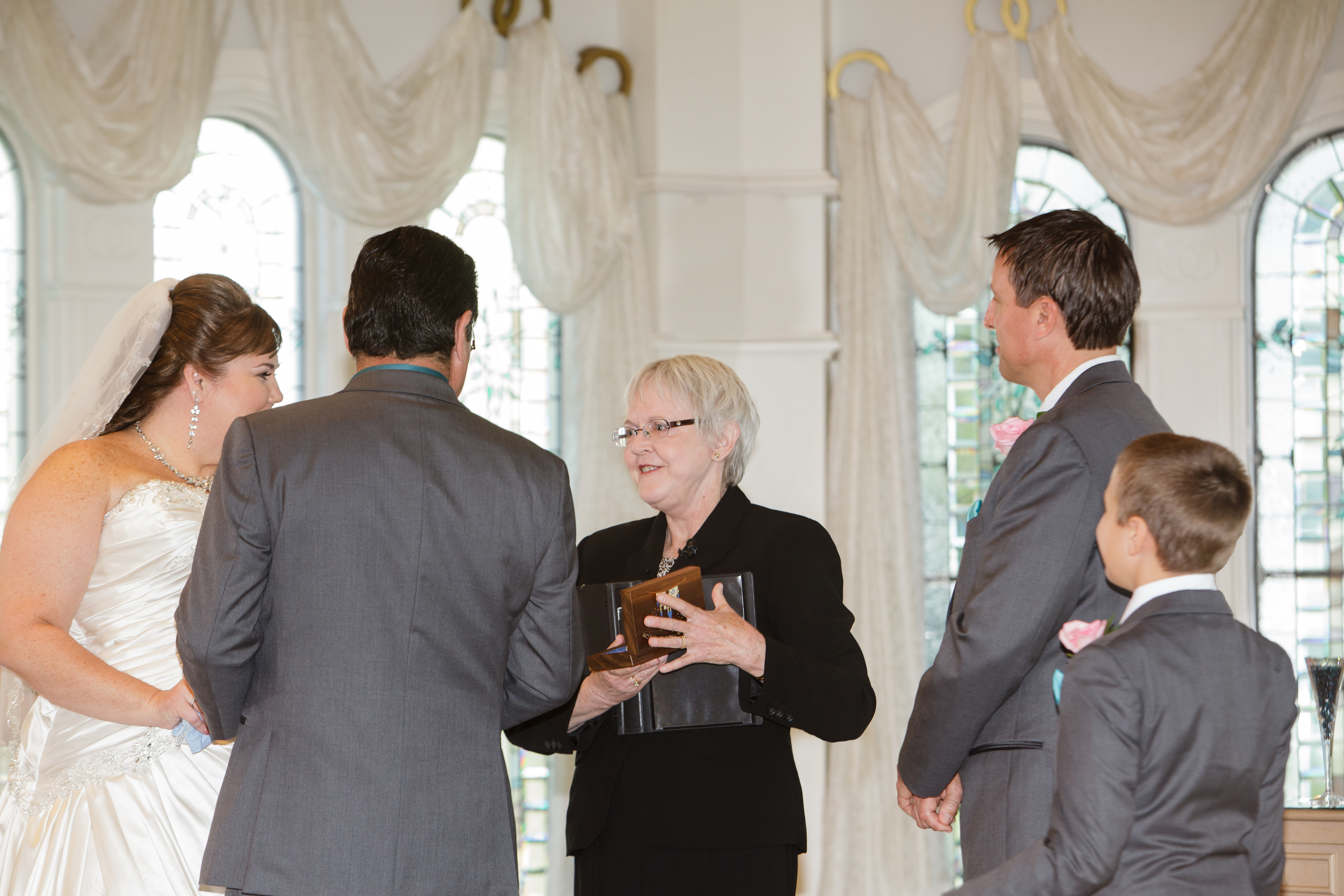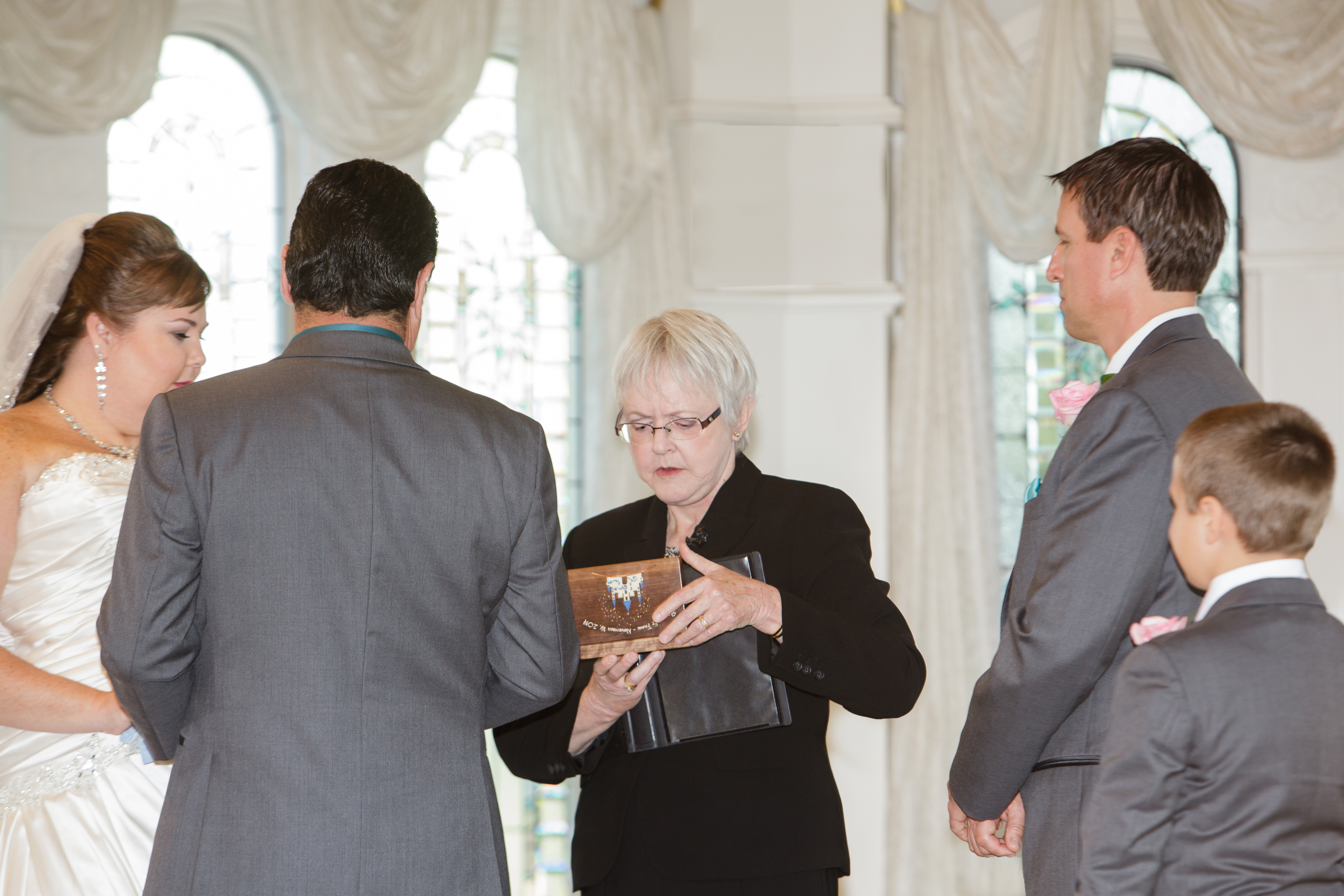 When our ceremony was turning out to be too long, she very gently identified the best parts to trim and again, dealing with an emotional bride, handled it like a pro to make sure that we both got what we needed and wanted from the ceremony while not boring our guests with a ceremony that dragged on too long. She even managed to work with my fiancé (now husband) and our Disney wedding coordinator to include a couple of very special surprises that this detail oriented, planned every minute bride had NO INKLING about and played the moments during the ceremony beautifully.