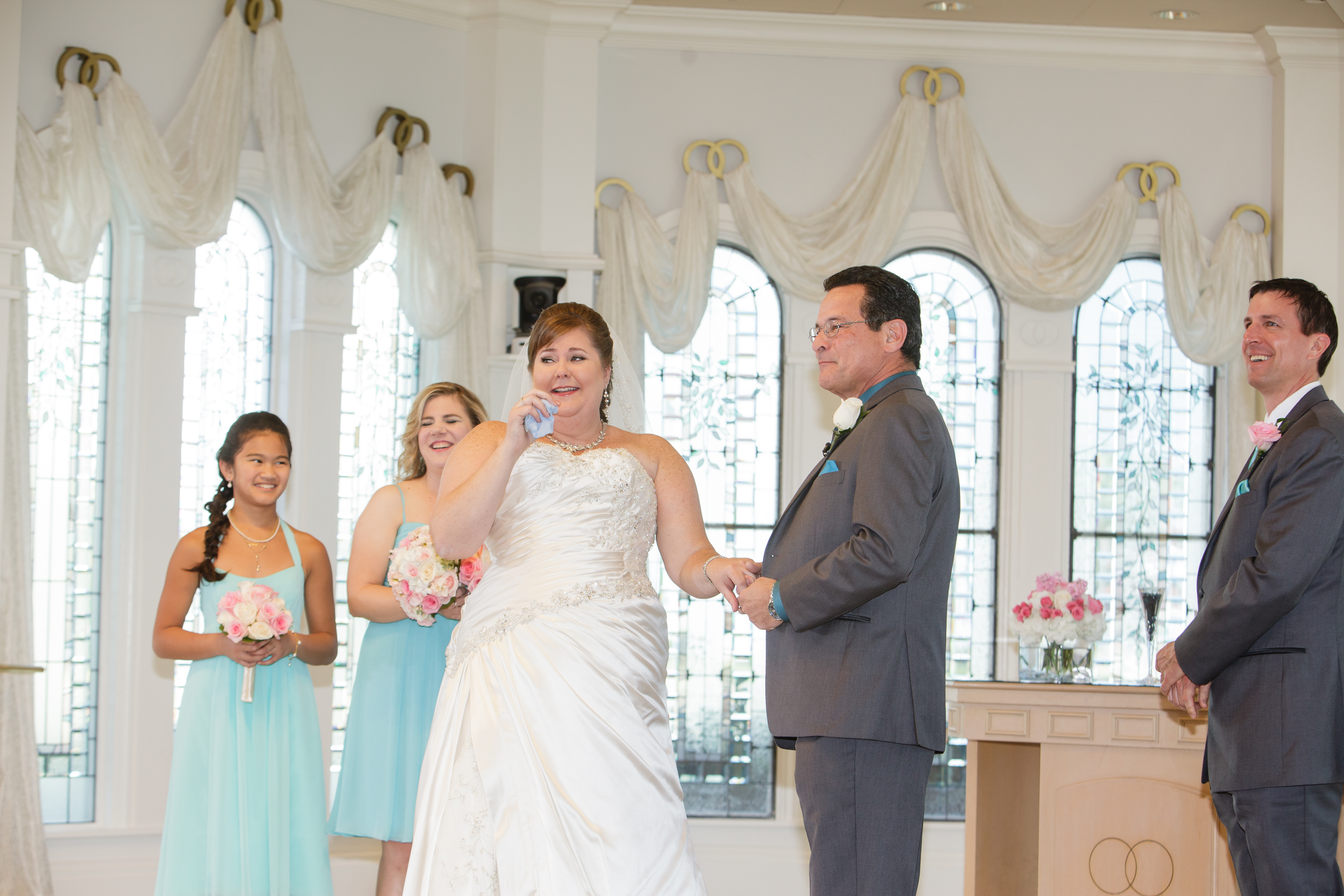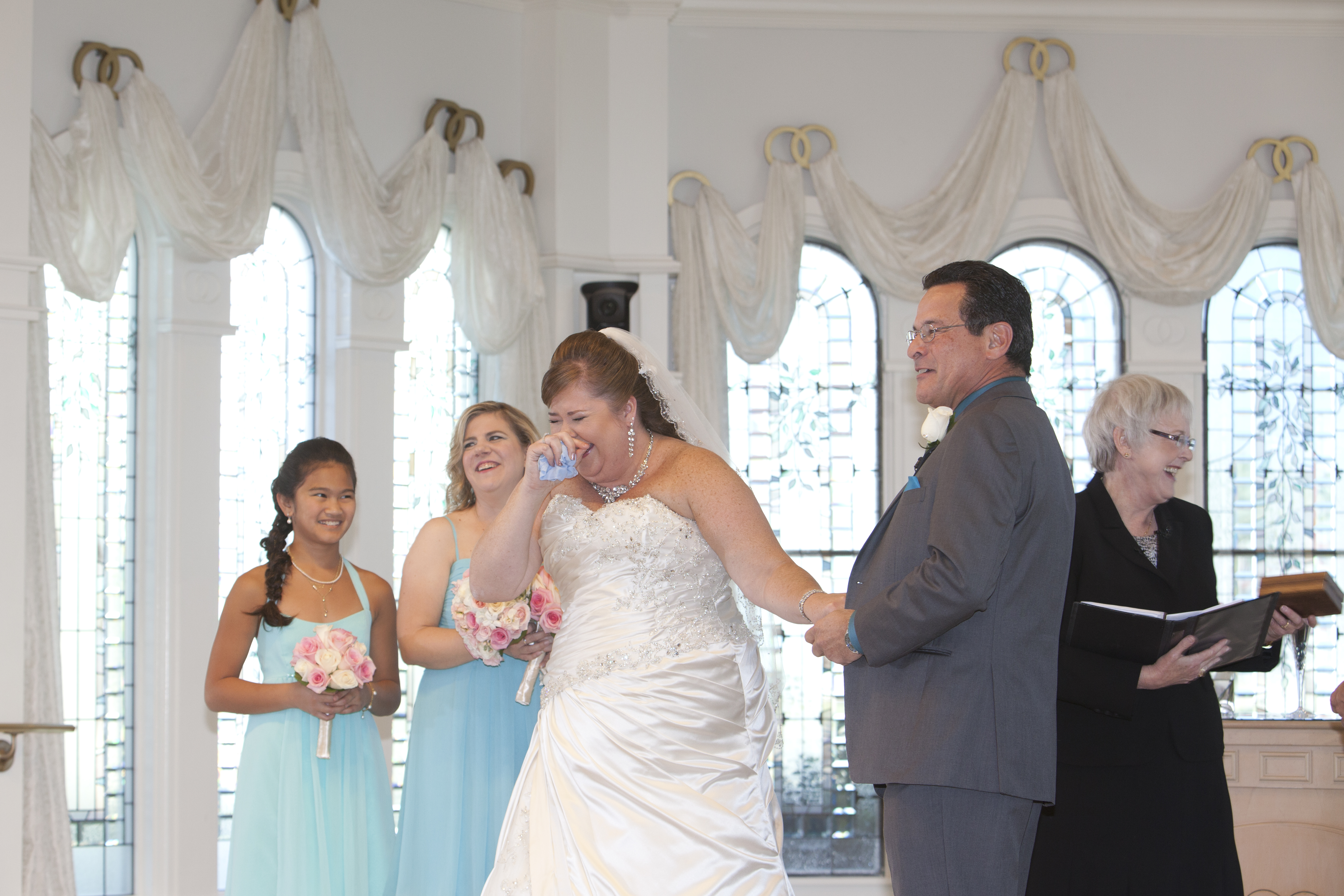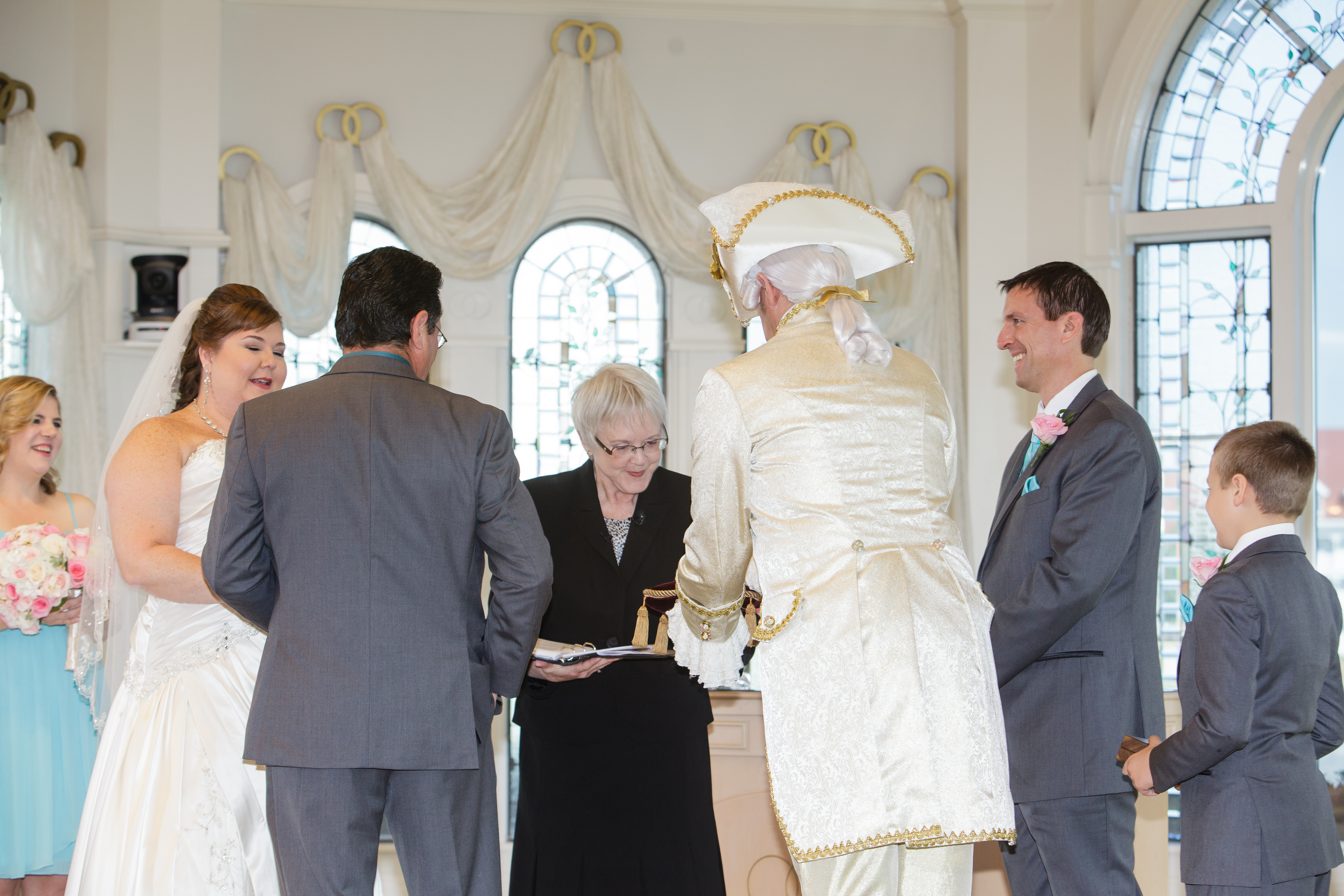 When our ceremony was turning out to be too long, she very gently identified the best parts to trim and again, dealing with an emotional bride, handled it like a pro to make sure that we both got what we needed and wanted from the ceremony while not boring our guests with a ceremony that dragged on too long. She even managed to work with my fiancé (now husband) and our Disney wedding coordinator to include a couple of very special surprises that this detail oriented, planned every minute bride had NO INKLING about and played the moments during the ceremony beautifully.